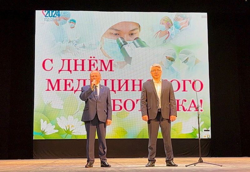 Председатель Народного Хурала Республики Бурятия Владимир Павлов вместе с Главой Бурятии Алексеем Цыденовым приняли участие в торжественном собрании медицинских работников, посвященном профессиональному празднику.