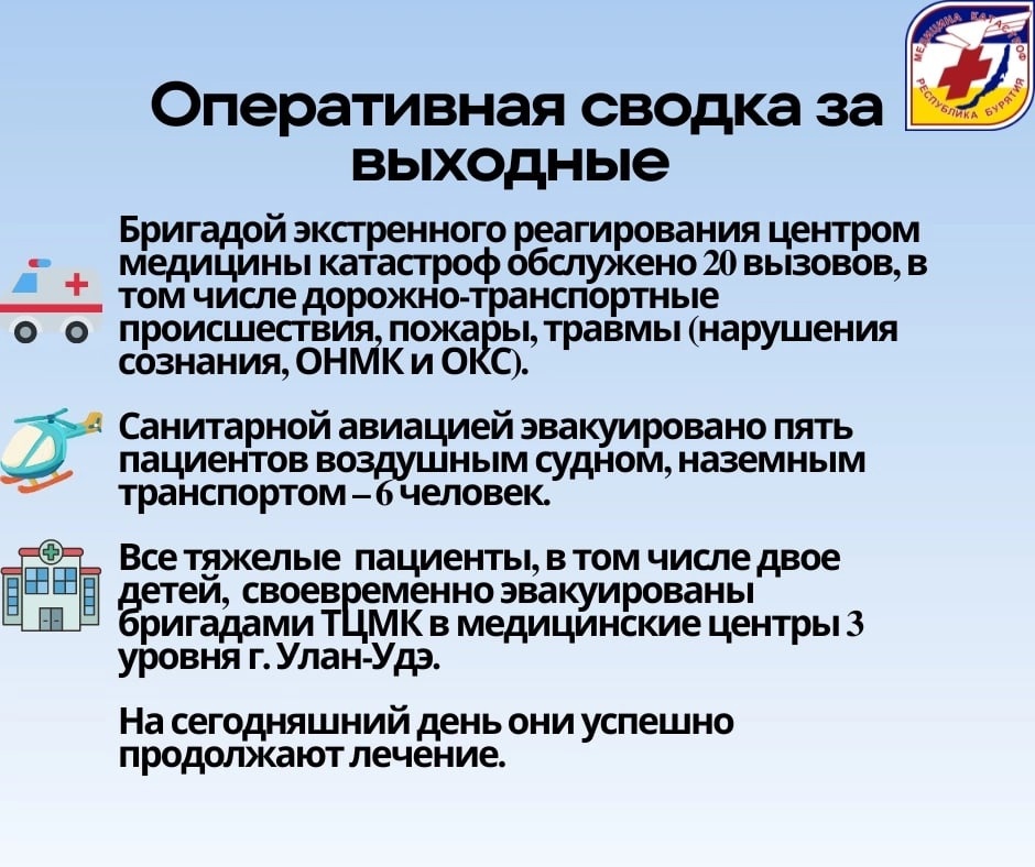 Всех тяжёлых пациентов, включая двоих детей, своевременно поместили в медцентры третьего уровня в столице Бурятии. Они продолжают лечение.