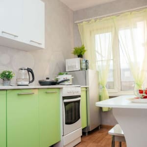 Из техники: телевизор, Wi-Fi, стиральная машина, холодильник, электроплита, микроволновка, чайник, утюг, гладильная доска, фен, постельное белье, кастрюля, сковородка, посуда, столовые приборы и прочие бытовые принадлежности.