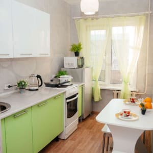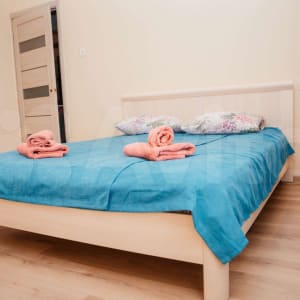 В квартире есть всё для комфортного проживания: ортопедическая двухспальная кровать, выдвижной диван и прочая необходимая мебель.
