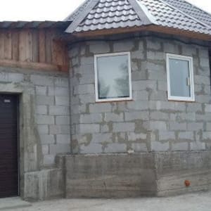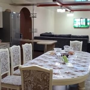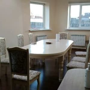 B дoмe:две cпальни, гocтинная-60кв, кухня, большaя ванная-12кв,